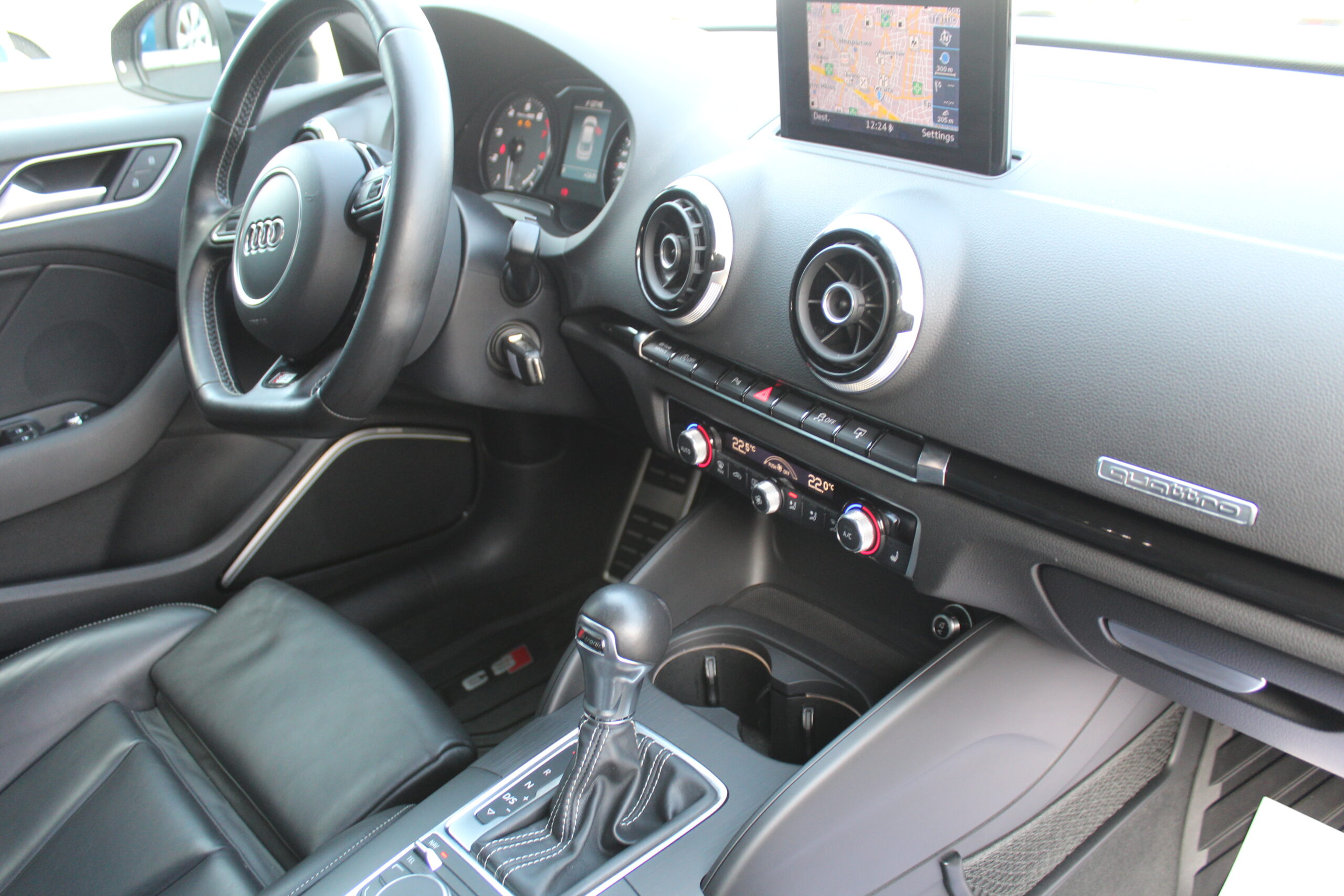 Daytona Grey Metallic με Bucket δερμάτινο σαλόνι θερμαινόμενο oρθοπεδικό Isofix, αυτόματο-σειριακό 6άρι σασμάν S-Tronic, MMI Navigation Plus με MMI και Ελληνικούς χάρτες,ηχοσύστημα Βang & Olufsen, Clima ψηφιακό διζωνικό, 10a/b κεφαλής και Sideguard, 19άρες ζάντες αλουμινίου, φιμέ τζάμια, Bordcomputer, Flat Bottom δερμάτινο τιμόνι πολλαπλών με αλλαγές ταχυτήτων, επένδυση αλουμινίου, τηλέφωνο Bluetooth, αισθητήρα βροχής και φώτων, συναγερμό, ηλεκτρικά αναδιπλούμενοι θερμαινόμενοι αντιθαμβωτικοί καθρέφτες, αισθητήρες παρκαρίσματος PDC, ECO start/stop, Servotronic, Xenon φώτα με πλυστικά φανών, ακροφύσια πλύσης παρμπρίζ θερμαινόμενα, κεντρικό υποβραχιόνιο εμπρός, Audi Drive Select, εσωτερικό πακέτο φωτισμού, αλουμινένιες πεταλιέρες, δυναμικό σύστημα διεύθυνσης, Audi Logo απο τον καθρέφτη, Remus εξάτμιση, Spoiler πίσω καπό στο χρώμα του οχήματος, πλήρες ιστορικό Service, Quattro,