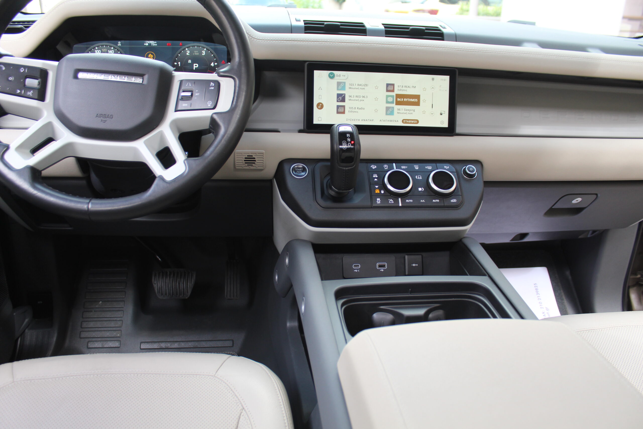 Gondwana Stone Gloss μεταλλικό, μπέζ δερμάτινο ηλεκτρικό σαλόνι με μνήμες θερμαινόμενο και αεριζόμενο ορθοπεδικό, μεγάλο πακέτο δέρματος, γυάλινη ηλεκτρική πανοραμική οροφή, δερμάτινο ταμπλό, 8άρι αυτόματο σασμάν, δερμάτινο ηλεκτρικό τιμόνι πολλαπλών θερμαινόμενο, 20άρες ζάντες Krypton Grey + Machined, ρεζέρβα 20″, ρεζερβοθήκη, ηλεκτρονική αερανάρτηση Four Corner Air Suspension, Pdc με Rear and Front View Camera 360, Meridian ηχοσύστημα 600W Surround System, Digital Audio Broadcast, ηλεκτρικά αναδιπλούμενοι θερμαινόμενοι αντιθαμβωτικοί καθρέφτες, εσωτερικός καθρέφτης με Camera, Navigation 11,4” Touchscreen με Ελληνικούς χάρτες, Camera διασταύρωσης 3D Surround, Led φώτα, Bluetooth, Keyless-go, usc θύρες, υποστήριξη μεγάλης σκάλας, έλεγχο πίεσης ελαστικών, TFT όργανα, ECO start/stop, εργοστασιακό συναγερμό, αυτόματο πιλότo με λειτουργία φρένου, φιμέ τζάμια, πυροσβεστήρα, Auto Terrain Response, θερμαινόμενο εμπρός παρ μπρίζ, 2 ζωνικό Clima, SOS Emergency Call, Apple Car Play, Incontrol APPS, Drive Pack, Blind Spot Information System, Lane Departure Run Off Road Warning System, Traffic Sign Recognition, Comfort and Convenience Pack, Autonomous Emergency Braking AEB, σχάρα οροφής, ψυγείο στην κεντρική κονσόλα, ασύρματη φόρτιση τηλεφώνου, μαρσπιέ φωτιζόμενα, Cold Climate Convenience Pack, 1o χέρι, Ελληνικό μενού,