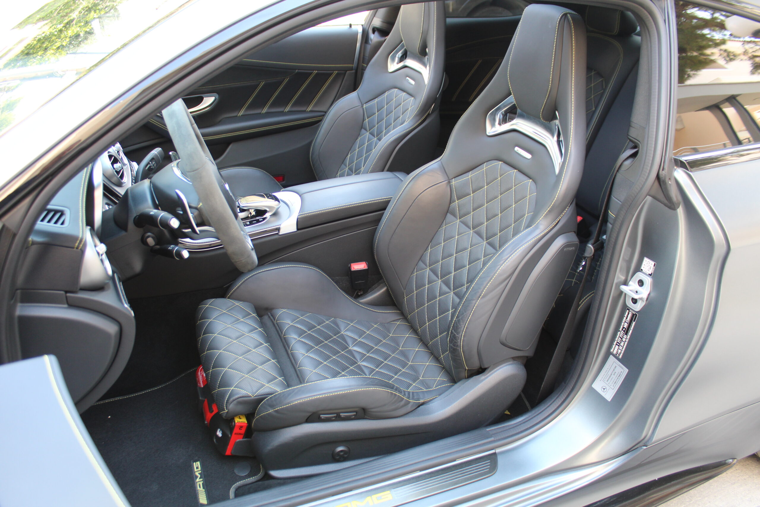 Selenite Grey Mango, Performance Bucket δερμάτινο ηλεκτρικό σαλόνι με μνήμες ορθοπεδικό θερμαινόμενο με κίτρινες ραφές, δερμάτινο ταμπλό με κίτρινες ραφές, γυάλινη ηλεκτρική πανοραμική οροφή, Νavigation-Command DVD με Ελληνικούς χάρτες και αναγνώριση σημάτων, αυτόματο σειριακό 7άρι σασμάν, αυτόματο πιλότο με λειτουργία φρένου, AMG Performance Steering Wheel πολλαπλών ηλεκτρικό με αλλαγές ταχυτήτων, Dynamic Led φώτα, DVD Changer, υποστήριξη μεγάλης σκάλας, 20άρες ζάντες AMG, χρυσά κεραμικά φρένα, έλεγχο πίεσης ελαστικών, Carbon επένδυση, 10a/b, DVD Changer, Park Assist με 360” Viewing System, αισθητήρες βροχής και φώτων, Βluetooth, Βordcomputer, αναδιπλούμενοι αντιθαμβωτικοί καθρέφτες, έλεγχος λωρίδας κυκλοφορίας, εσωτερικό πακέτο φωτισμού, πυροσβεστήρα, φωτιζόμενοι μαρσπιέδες, φωνητικές εντολές, Blind Spot Assist, ηλεκτρικό πόρτ μπαγκάζ, προστασία πεζών, μαύρη επένδυση ουρανού, υποστήριξη μεγάλης σκάλας, φιμέ τζάμια, ηχοσύστημα Bruemster, AMG Driver Package, AMG – Ceramic Brake System, Ski-Sack, μεγάλο ρεζερβουάρ, ηλεκτρονικά ελεγχόμενο μπλοκέ διαφορικό, Sport εξατμίσεις με ηλεκτρικά κλαπέτα, εργοστασιακό συναγερμό με εσωτερική προστασία και 2ο συναγερμό που ακινητοποιεί το αυτοκίνητο, πλήρες ιστορικό Service, απο Service, V8 Bi-TURBO, AMG Performance, Edition 1.
