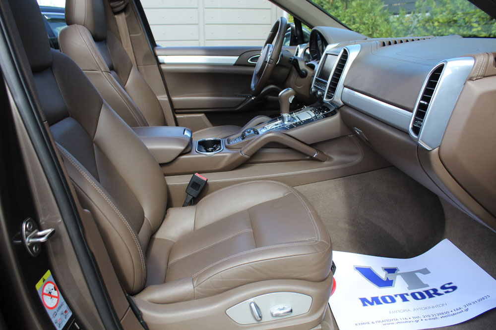 Umber καφέ μεταλλικό με καφέ δερμάτινο ηλεκτρικό σαλόνι με μνήμες θερμαινόμενο Bucket Isofix, πίσω θερμαινόμενα, καφέ δερμάτινο ταμπλό, καφέ μοκέτες ουρανό και ζώνες, αερανάρτηση με ρύθμιση επιπέδου και ρύθμιση ύψους (PASM) Porsche Active Suspension Management, πανοραμική οροφή, Navigation με Ελληνικούς χάρτες, πυξίδα, Bluetooth, ηχοσύστημα BOSE, Bi-Xenon φώτα + PDLS Porsche Dynamic Light System σε χρώμα μαύρο, σύστημα καθαρισμού προβολέων, αυτόματο-σειριακό 8άρι σασμάν, Cruise Control, ηλεκτρικά αναδιπλούμενοι αντιθαμβωτικοί καθρέφτες, βοήθεια στάθμευσης υπερήχων και Camera οπισθοπορείας, αισθητήρες βροχής και φώτων, Sport δερμάτινο τιμόνι πολλαπλών με αλλαγές ταχυτήτων, θύρα usb, φιμέ αντιθερμικά τζάμια, 20” ζάντες Cayenne Sport Design, μπουλόνια τροχών με αντικλεπτική προστασία, Clima διζωνικό, έλεγχο πίεσης ελαστικών RDK, ποτηροθήκες, συναγερμό, κάλλυμα αποσκευών, αλουμινένια μαρσπιέ, φώτα ημέρας, πακέτο αλουμινίου Sport, προετοιμασία κοτσαδόρου, ECO start/stop, Lane Assist, θερμαινόμενα πιτσηλιστήρια, Light Comfort Package, Home Link, Porsche Entry & Drive, μπροστινό παρμπρίζ σε θερμομονωτικό κρύσταλλο με φωτοαπορροφητικό φίλτρο, πυροσβεστήρα, ρεζερβουάρ καυσίμου 100 λίτρα, ηλεκτρικό πόρτ μπαγκάζ, πλήρες ιστορικό Service