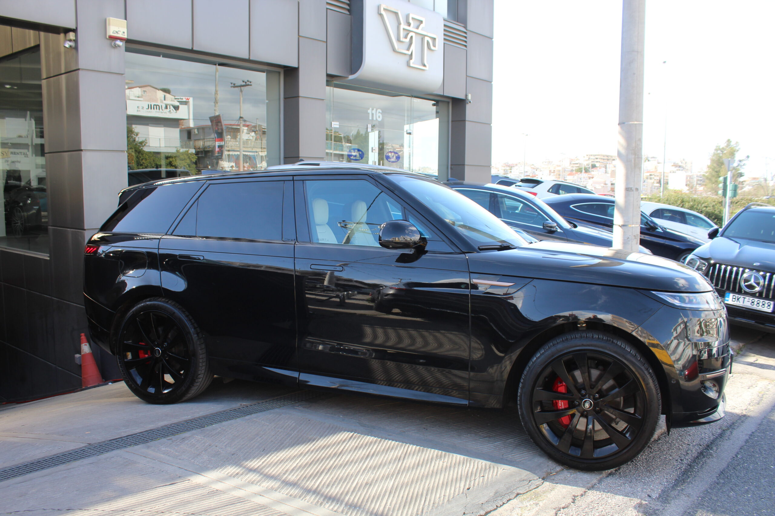 Santorini Black με μπέζ δερμάτινο ηλεκτρικό σαλόνι με μνήμες θερμαινόμενο ορθοπαιδικό με μασάζ Isofix, Premium Leder, δερμάτινο ταμπλό, πίσω θερμαινόμενο ηλεκτρικό σαλόνι, οθόνες πίσω, γυάλινη ηλεκτρική πανοραμική οροφή, Clima ψηφιακό, δερμάτινο ηλεκτρικό τιμόνι πολλαπλών με αλλαγές ταχυτήτων, 23” ζάντες Kingdom Dark Grey, κόκκινες δαγκάνες φρένου, αερανάρτηση, Pdc με 360” Surround Camera System, Meridian Hi Line Audio System 600W Surround System, ηλεκτρικά αναδιπλούμενοι καθρέφτες, Navigation Touchscreen με Ελληνικούς χάρτες, Traffic Sign Recognition, Camera διασταύρωσης, ηλεκτρικό πορτ μπαγκάζ, Αdaptive LED φώτα με πλυστικά φανών, Bluetooth, ασύρματη φόρτιση, Keyless-Go, usc θύρες, υποστήριξη μεγάλης σκάλας, αισθητήρες βροχής και φώτων, αυτόματο πιλότο, φιμέ τζάμια, έλεγχο πίεσης ελαστικών, εργοστασιακό συναγερμό, μαύρη επένδυση ουρανού, All Terrain Progress Control, Lane Departure Warning System, Ambient&Footwell Light, Blind Spot Assist, Digital Audio Broadcast, Soft Close, Apple Carplay, Amazon Alexa, Wi-Fi Enabled With Data Plan, έκδοση Dynamic, Model Year 2024, Ελληνικό μενού,